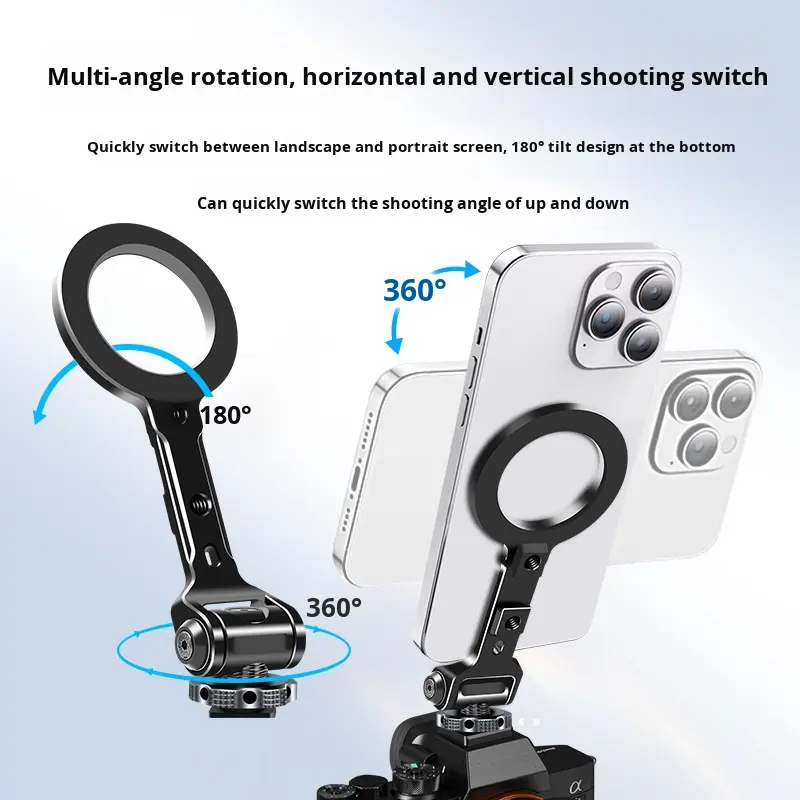 1/4\” Aluminum Cold Shoe with for Magsafe for iPhone 12-16 Magnetic Phone Holder and Tripod Monitor Camera Adapte