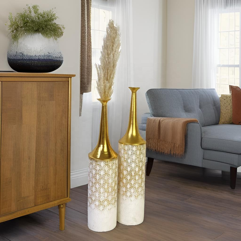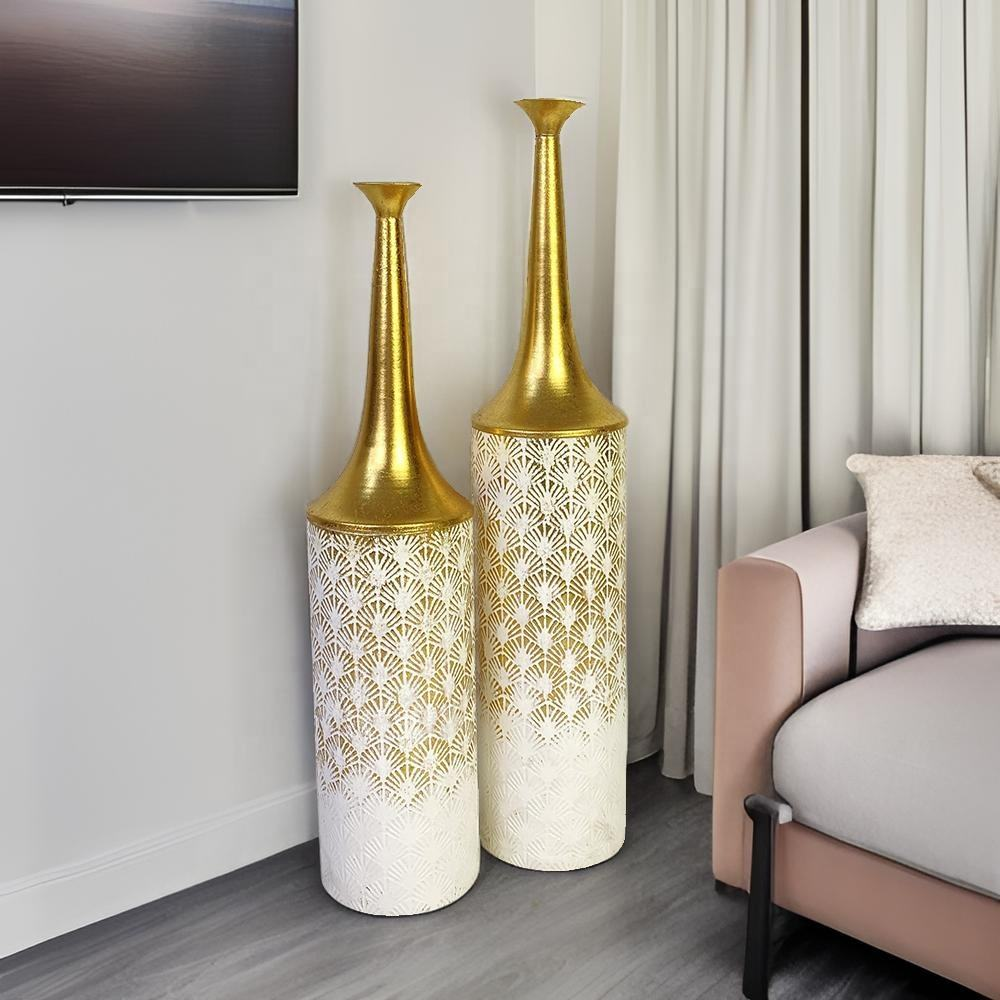 2 sets of rural coastal large retro gold metal vases, living room floor vases