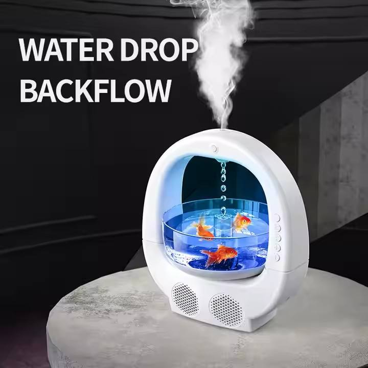 700ml Water Drop Backflow Fishbowl Shape Antigravity Portable Humidifier Musical Speaker Night Light Air Aromatherapy Diffuser