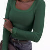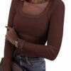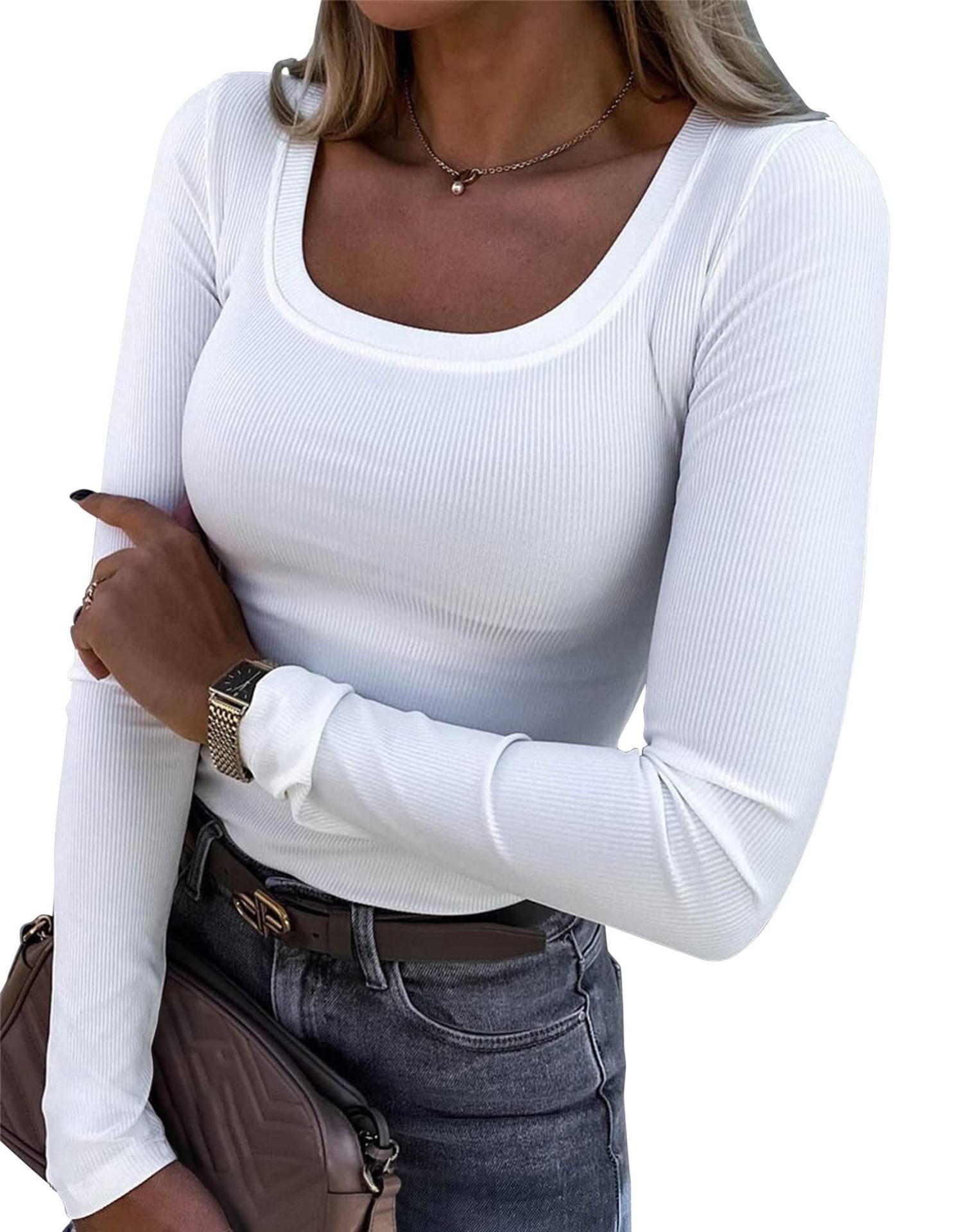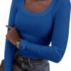 Autumn fashion polyester spandex blank T-shirt custom logo women’s slim fit ribbed slim fit long sleeved U-neck top