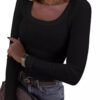 Be the first to review “Autumn fashion polyester spandex blank T-shirt custom logo women’s slim fit ribbed slim fit long sleeved U-neck top” Cancel reply