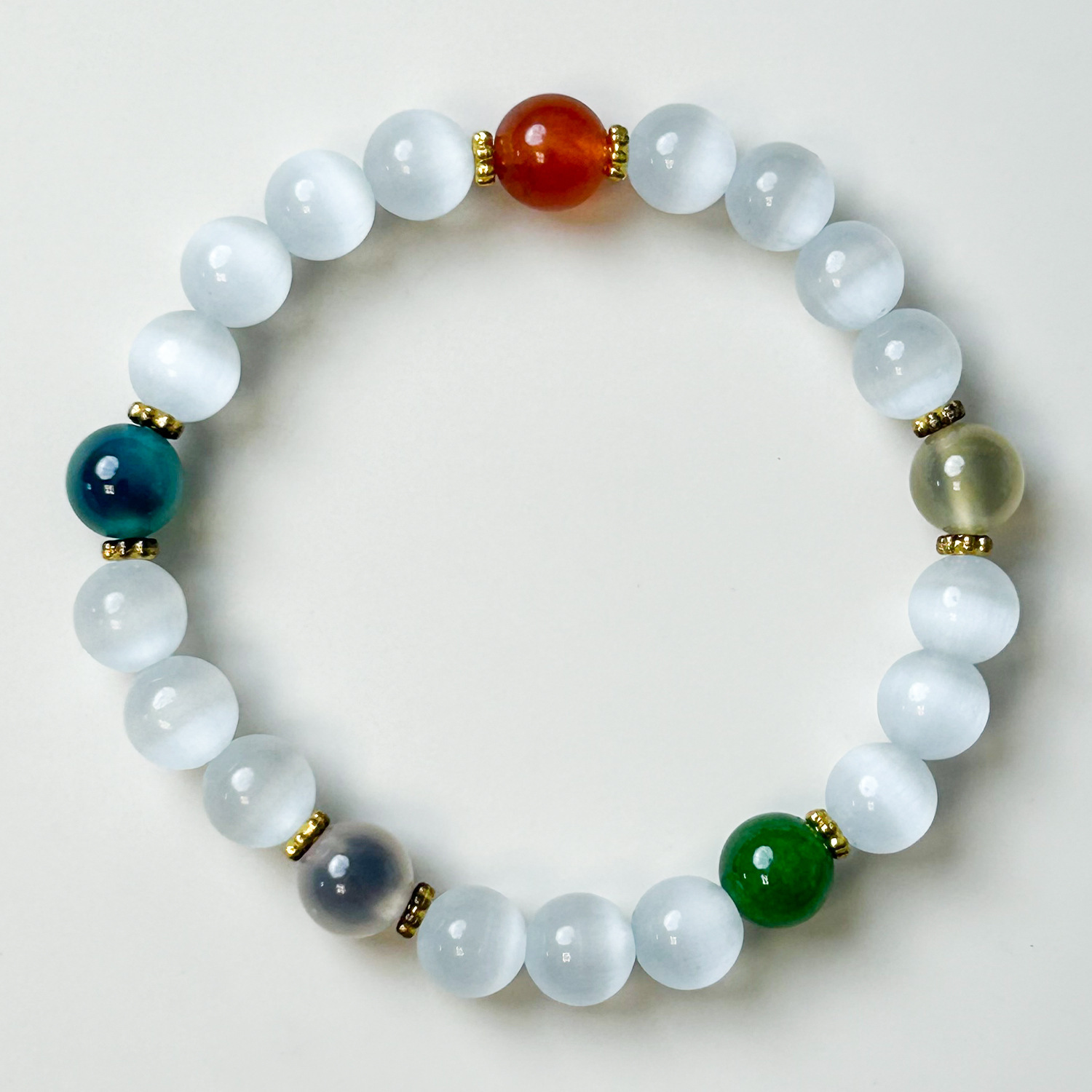 Natural white cat eye loose heart agate jade bracelet, personalized high-end DIY original design, high-quality women’s bracelet