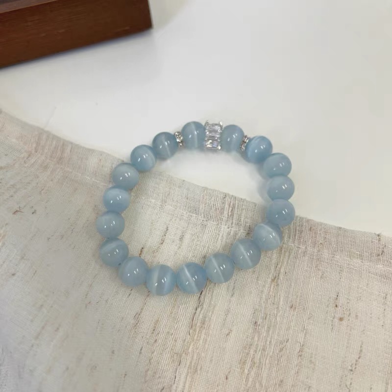 Full score for refreshing sensation! High ice cat’s eye stone bracelet, simple ancient style, Chinese style, new Chinese style cultural toys, Instagram, niche accessories