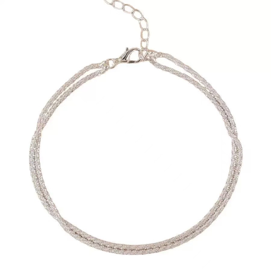 Minimalist Sparkling Silver Handmade Foot Chain Multi layer Chain Tassel Foot Accessories for Women