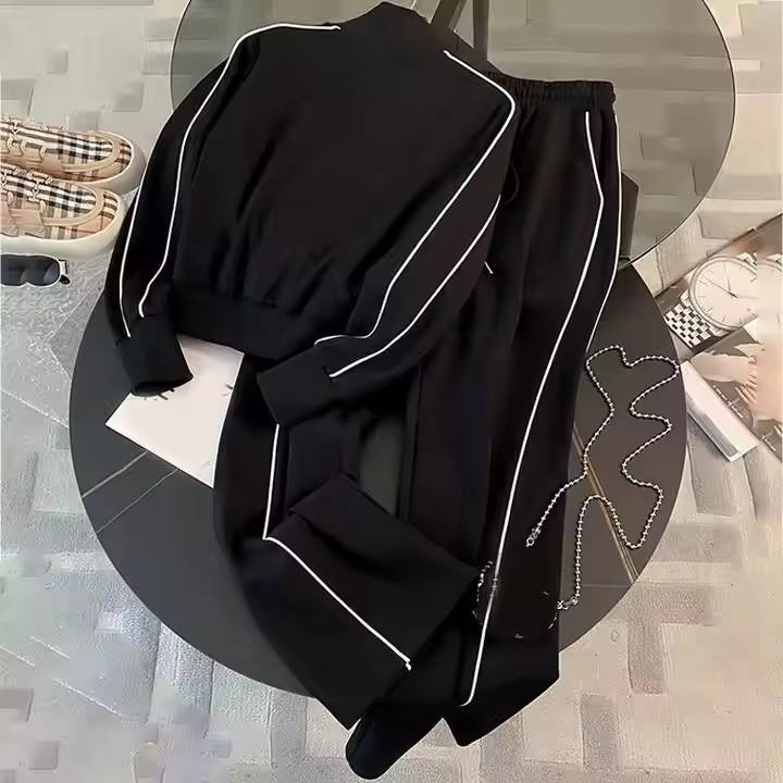 Classic women’s sportswear set, contrasting color women’s top and bottom set, fashionable women’s casual set