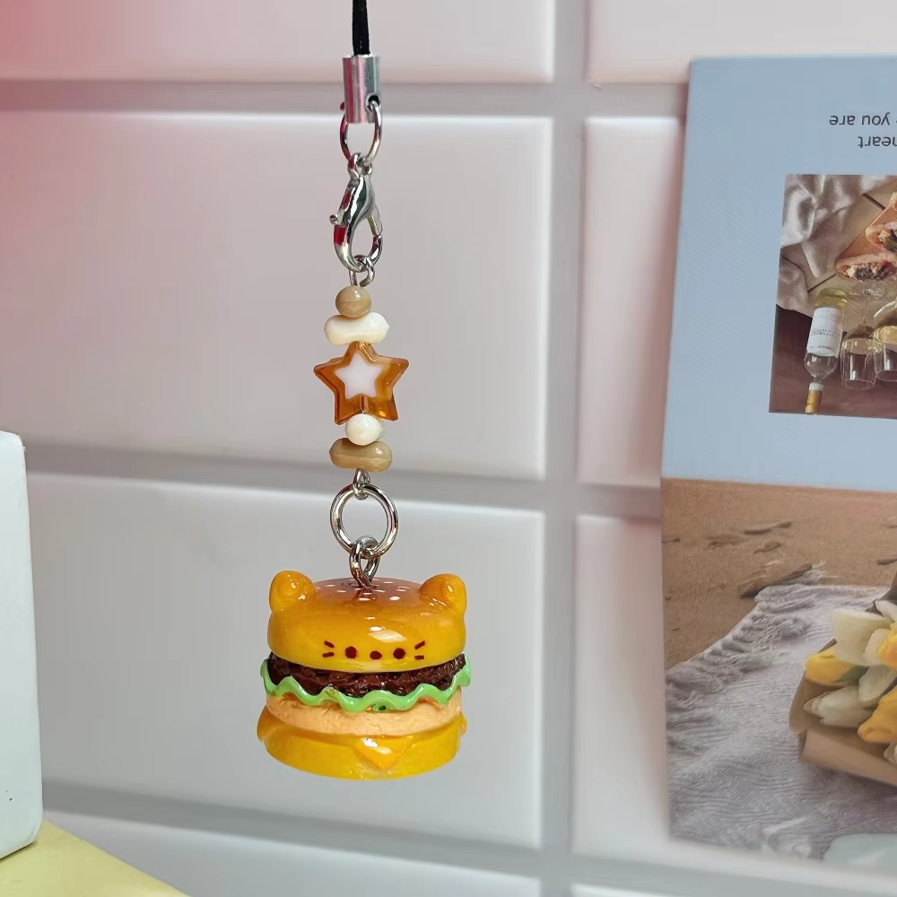 1 review for Creative Burger Pendant Cartoon 3D Pendant Cat Dog Mobile Phone Hanging Rope Cartoon Cute Student Decoration Keychain