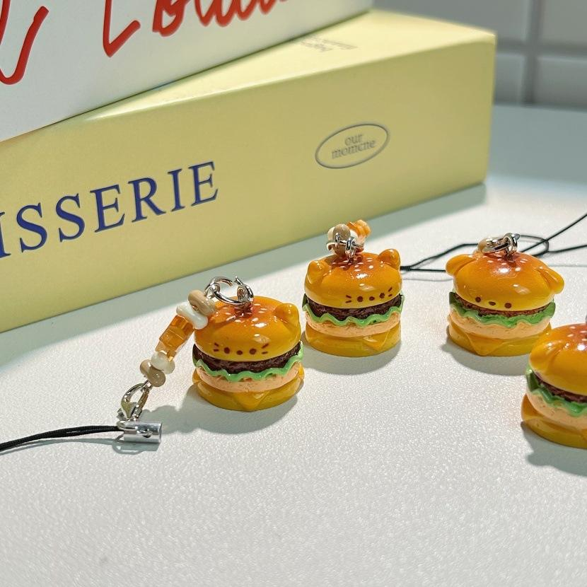 Creative Burger Pendant Cartoon 3D Pendant Cat Dog Mobile Phone Hanging Rope Cartoon Cute Student Decoration Keychain