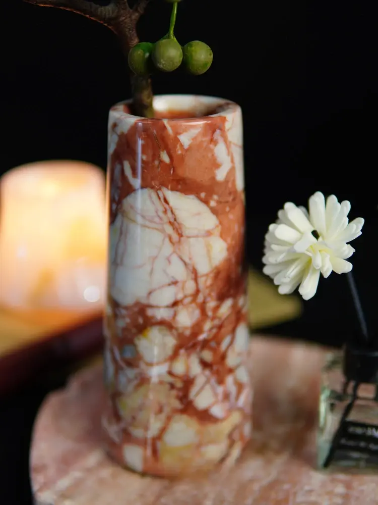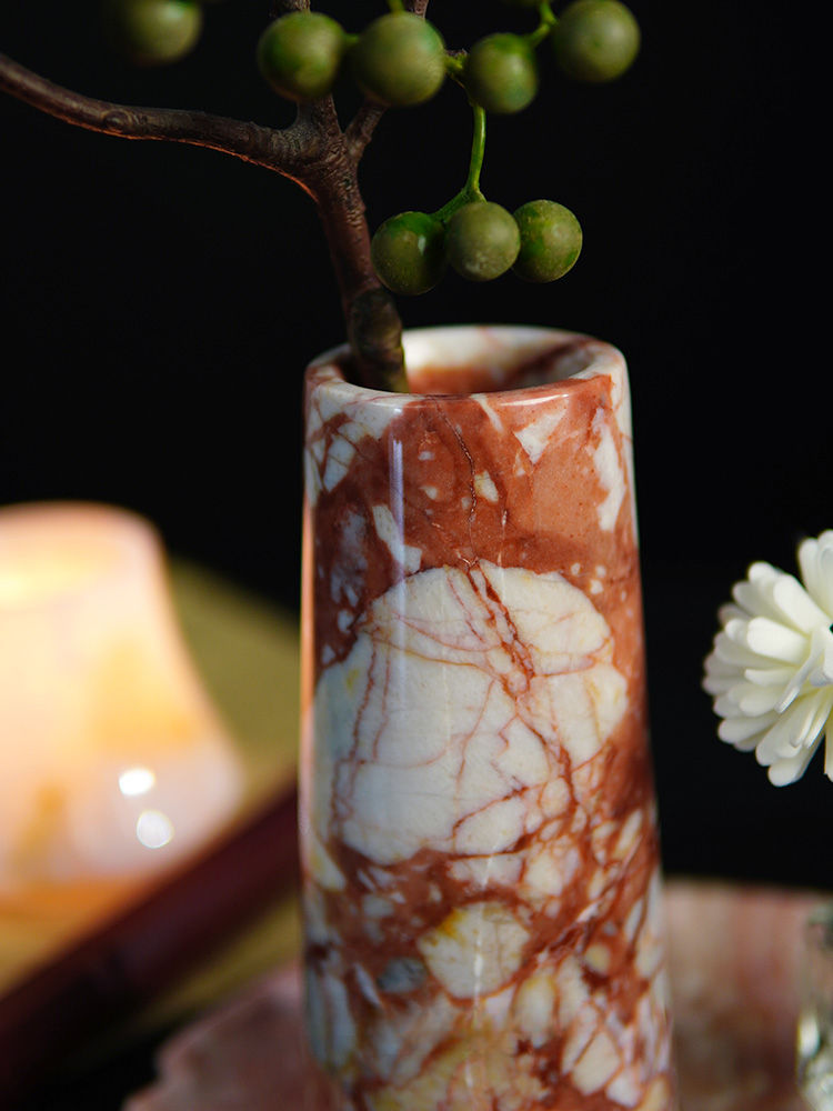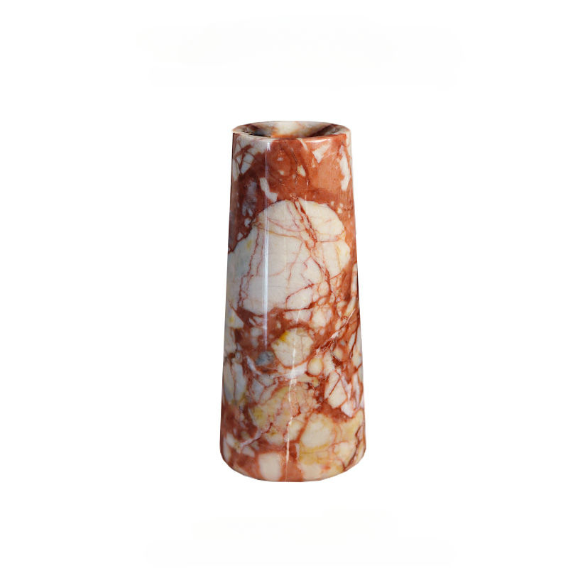 D8x18cm Natural MarbleRed Straight Tube Vase Creative Living Room Foyer Tabletop Decoration Ornament