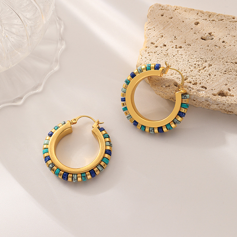 Retro vintage niche design, handmade bead turquoise earrings, high-end temperament, natural stone earrings