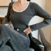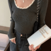 Female Casual Knitted Top Spring and Autumn Color Blocked Long-Sleeved Basic Knitwear Women’s O-Neck Pullover Sweater