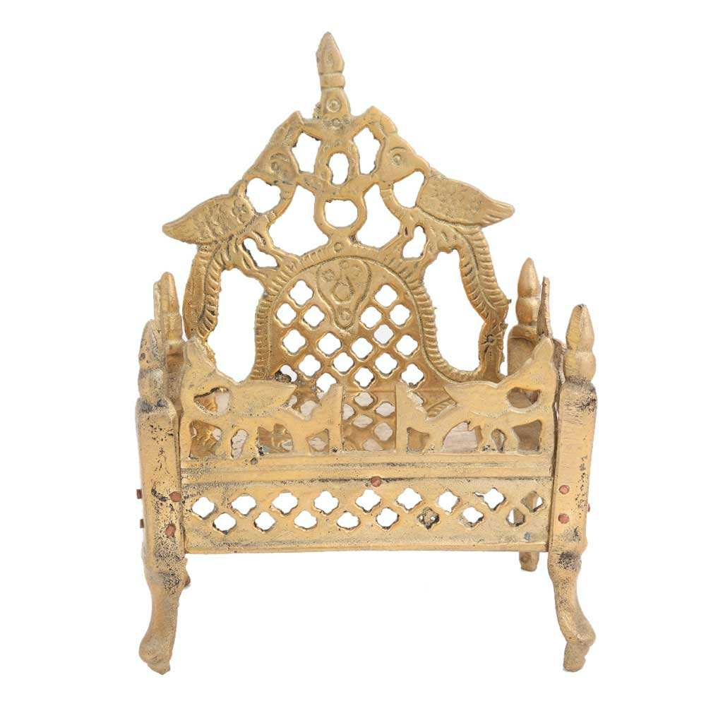 Handmade golden brass carving, Krishna Sinhasan bed, Pooja decorative sculpture, statue, declaration, decorative gift