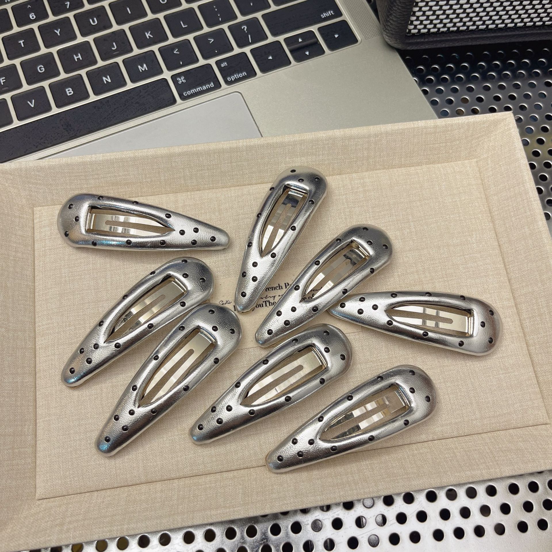 Side sweet cool style silver leather polka dot bb clip clip clip clip clip clip simple temperament bangs clip new hair accessories