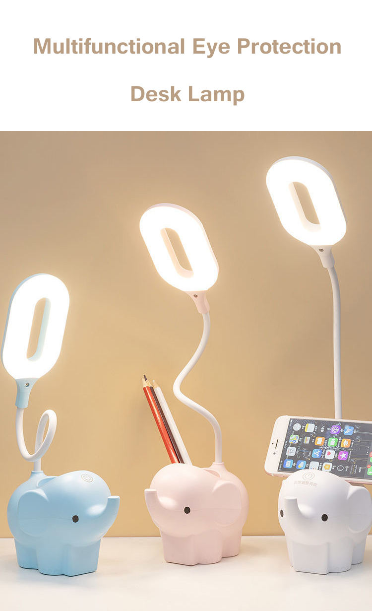 Led Desk Lamp USB Charging White Pink Blue Elephant Decorative Bedroom Living Room Dimmable Children’s Eye Protection Table Lamp