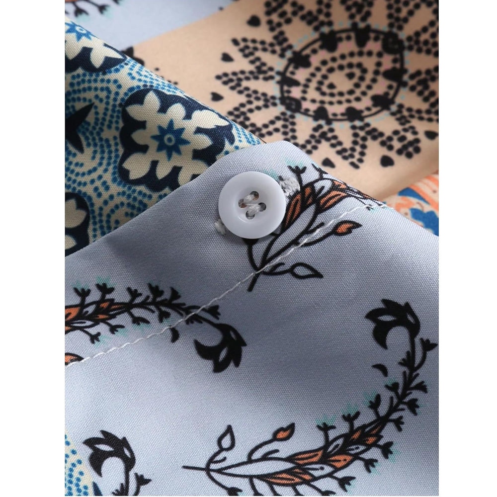 Letter Graphic Print Button Front Short Sleeve Shirt Top Short Set Breathable Printed Summer Men Shirt Set BY AMAZING INDUSTRIES
