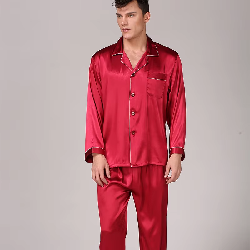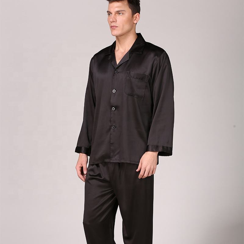 Man Gift Custom SatinTwo Piece Silk Satin Long Sleeve Polyester Top and Bottom Loungewear Pajamas Mans Sleepwear PJ SetMan Gift Custom SatinTwo Piece Silk Satin Long Sleeve Polyester Top and Bottom Loungewear Pajamas Mans Sleepwear PJ Set