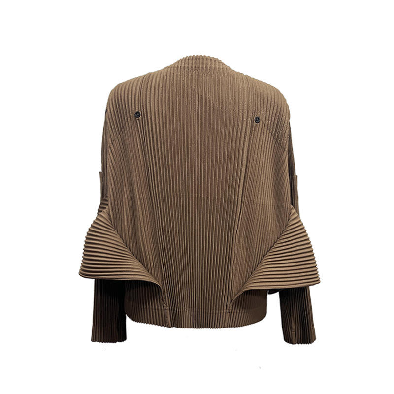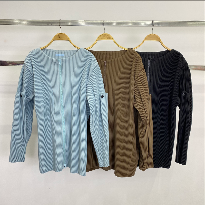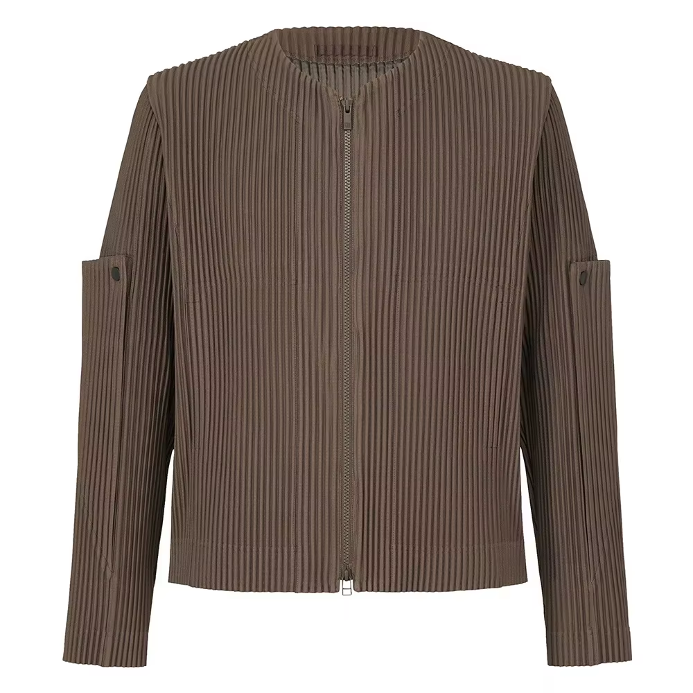 Men Custom Logo Casual Pleated Jackets With Zip up Workout Warm Polyester Pleats Jacket for Men