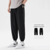 Men’s Summer Fine Woven Ice Silk Fabric High Elastic Running Ice Silk Long Pants Drape Cooling Beam Feet Nine-point Trousers