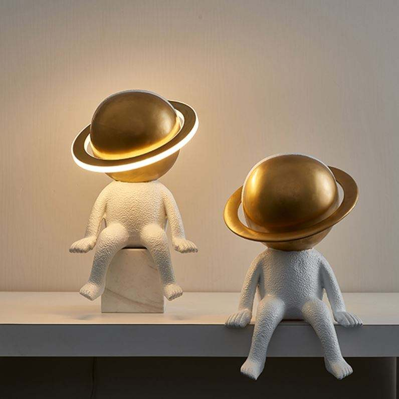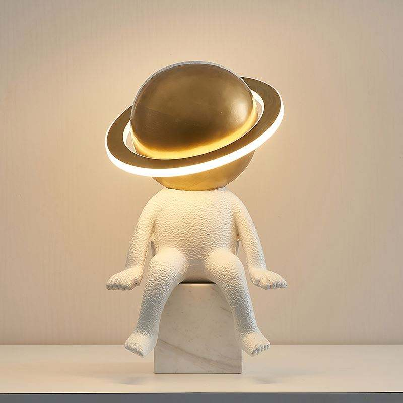 Modern Children’s Bedroom Bedside Desk Lamp Simple Resin Table Lamp with for Astronaut Posture Eco-Friendly for Room Decorative