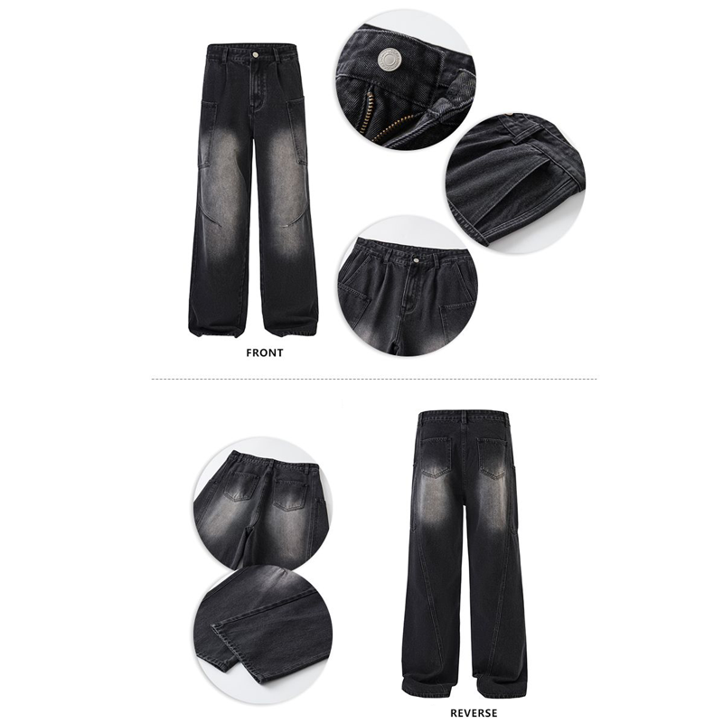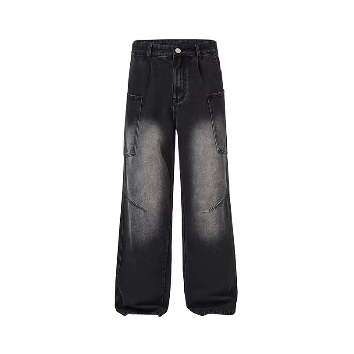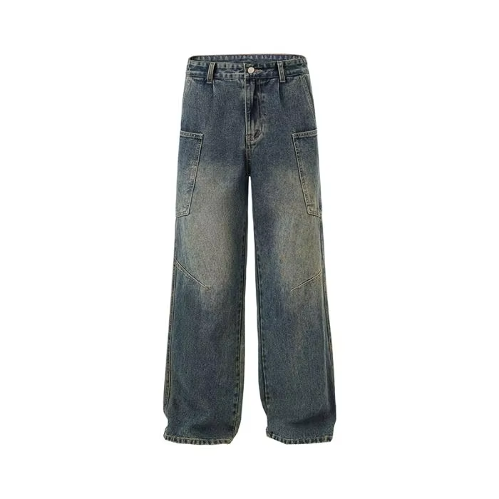 Multi pocket loose jeans men’s casual straight leg work pants men’s loose work pants embroidered streetwear
