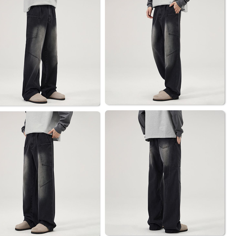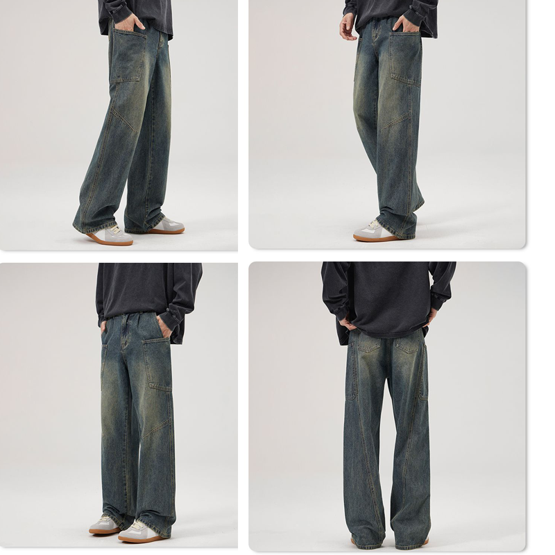 Multi pocket loose jeans men's casual straight leg work pants men's loose work pants embroidered streetwearMulti pocket loose jeans men’s casual straight leg work pants men’s loose work pants embroidered streetwear