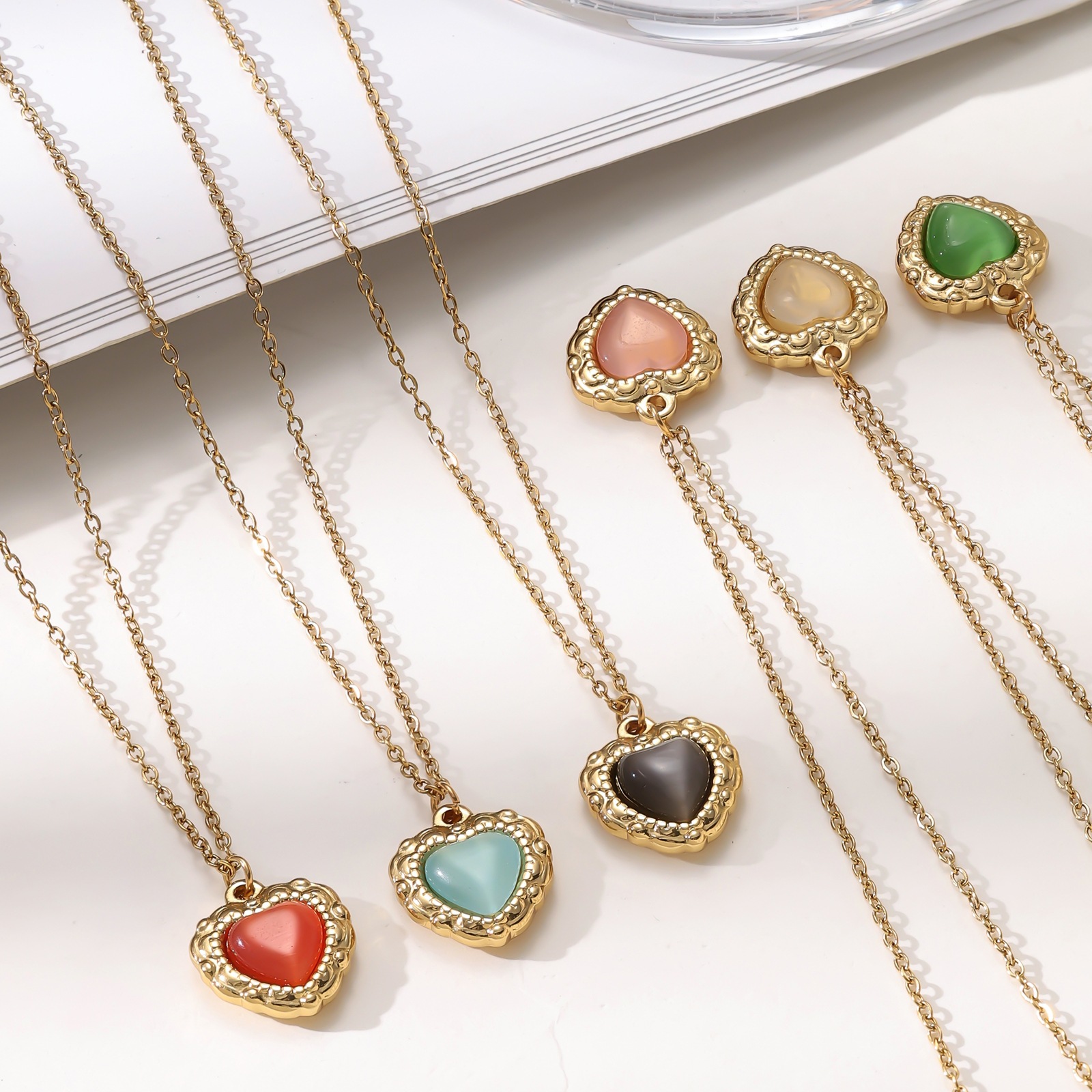 Wind cat eye stone love titanium steel necklace for women, versatile, light luxury, niche, European and American simple collarbone chain jewelry