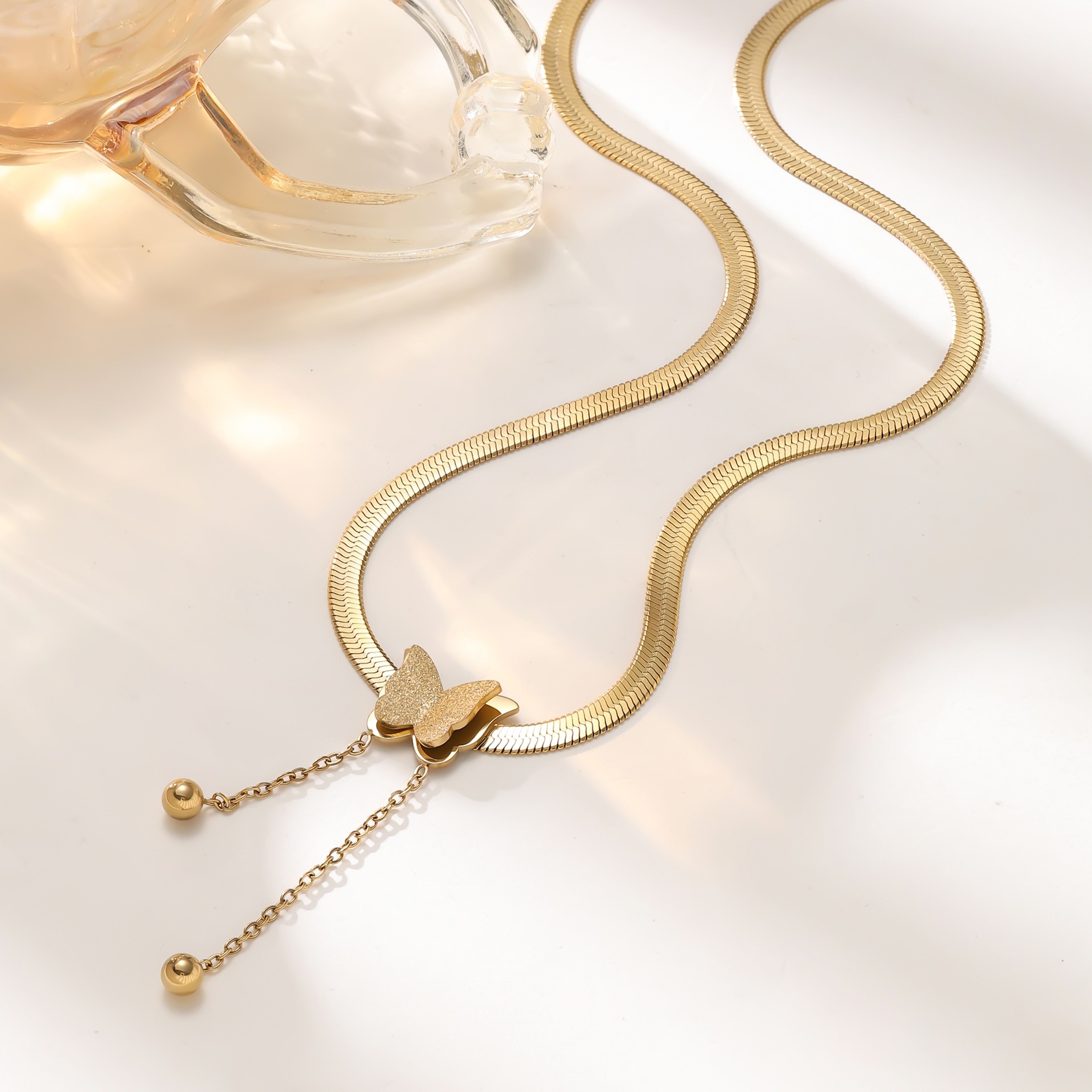 Titanium steel temperament butterfly tassel blade chain 304 stainless steel necklace women’s non fading fashion versatile elegant jewelry