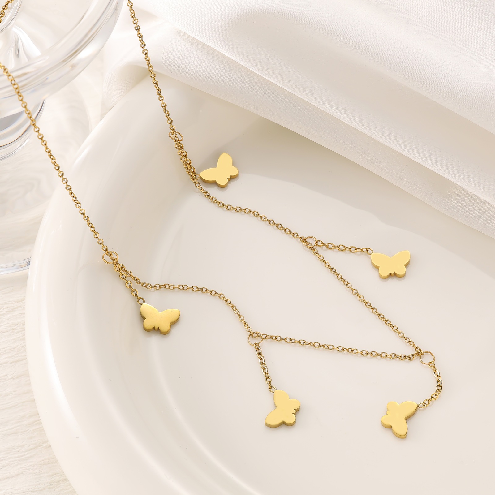 Butterfly tassel titanium steel necklace for women, plated with 18K gold, fashionable and versatile, high-end collarbone chain accessory
