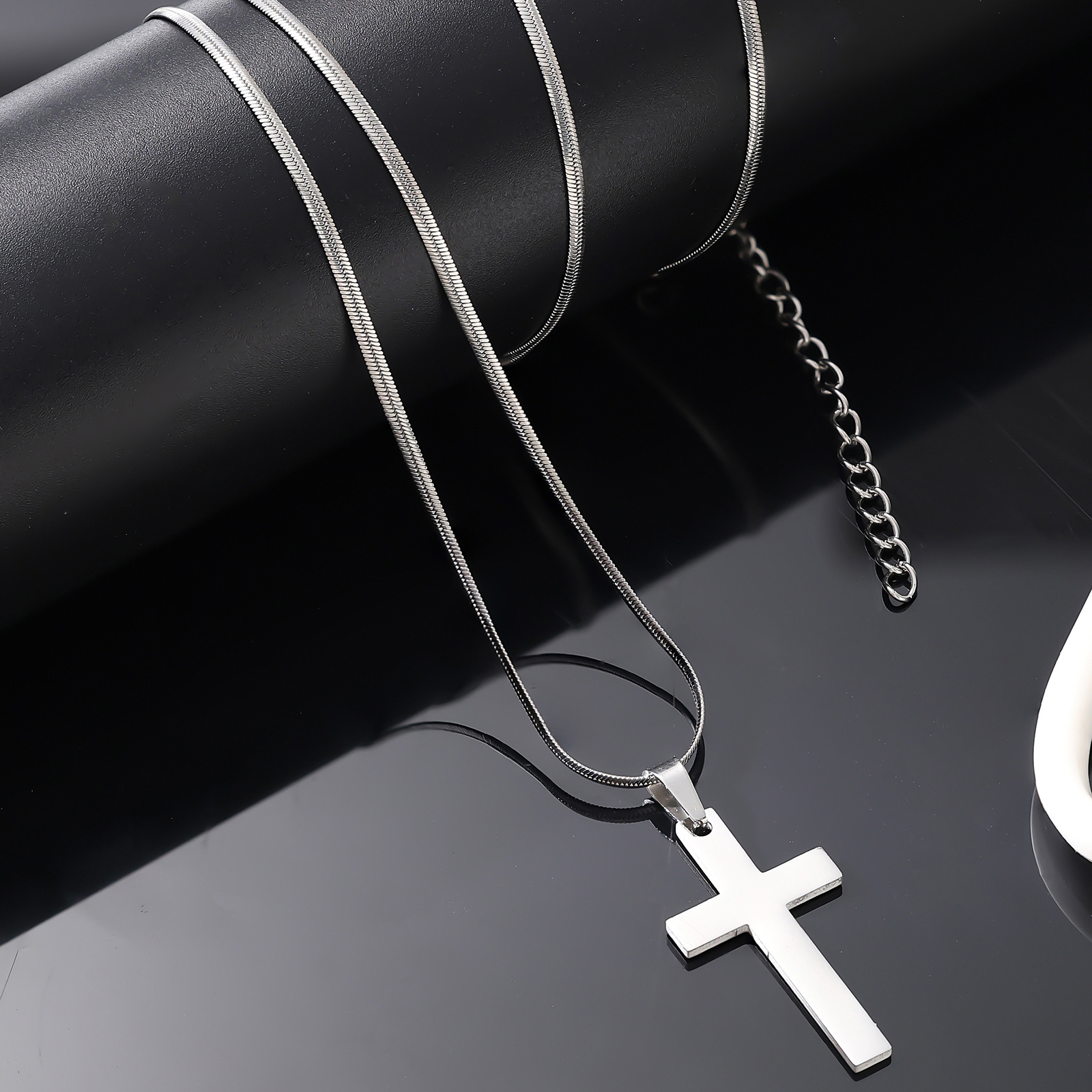 304 stainless steel necklace, flat snake chain, Cuban chain, smooth cross pendant, titanium steel jewelry