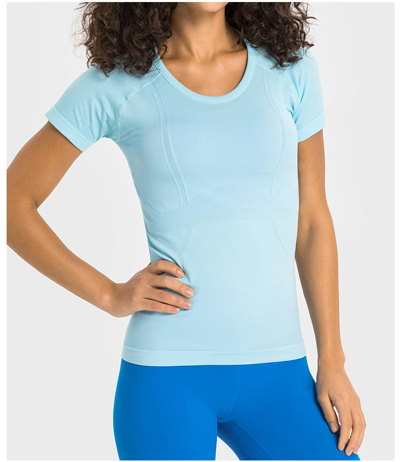New Fashion Women Workout Seamless Fitness Shirts Short Sleeve Athletic Compression Quick Dry Yoga Gym Tops