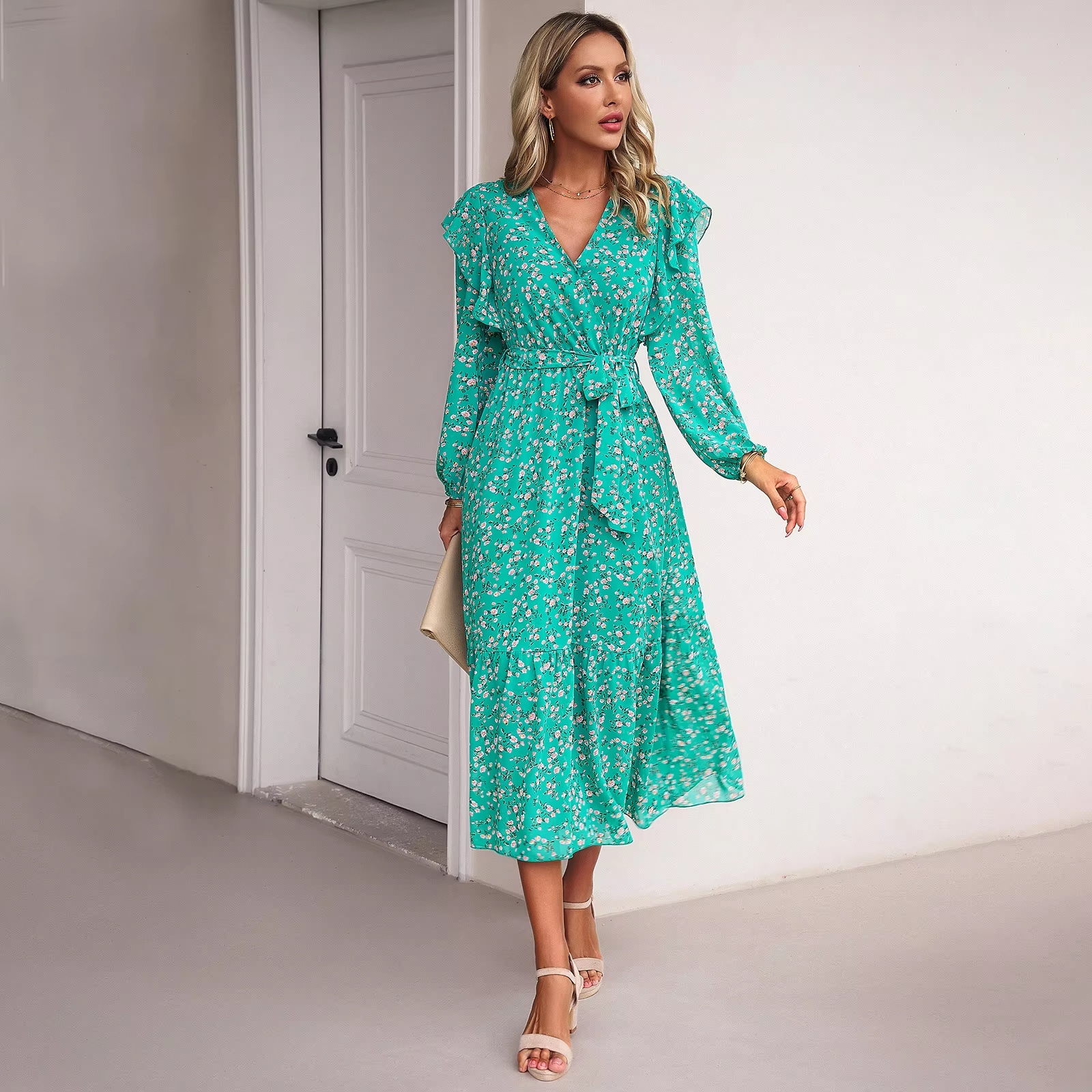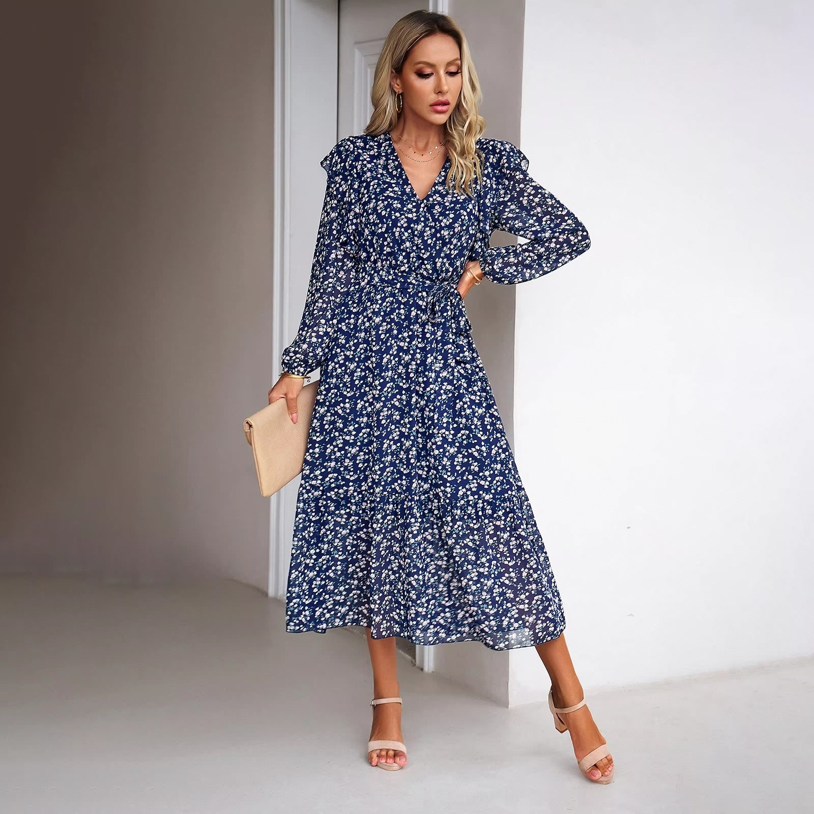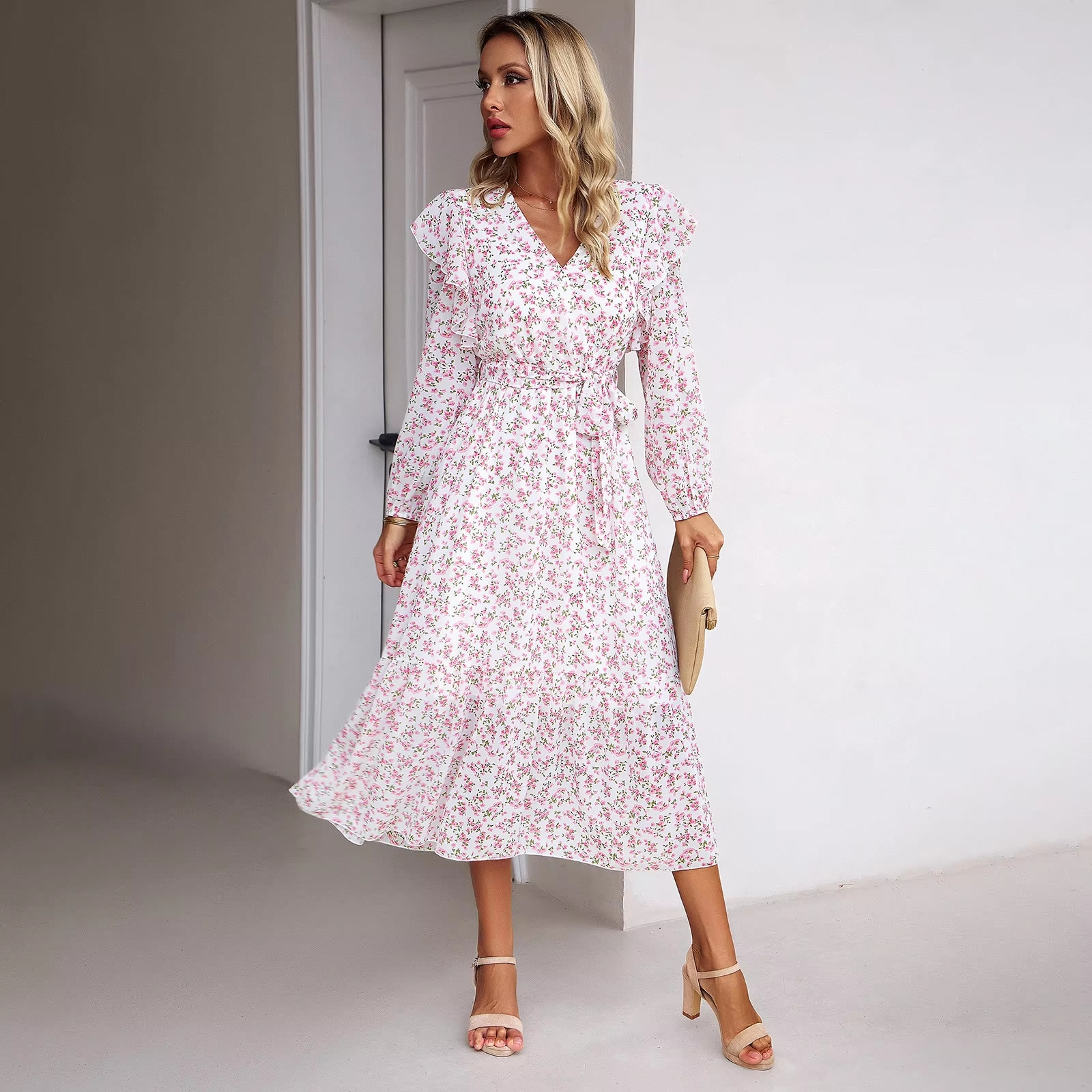 Searsons Fashion Casual Floral V-neck Long Sleeve Dress