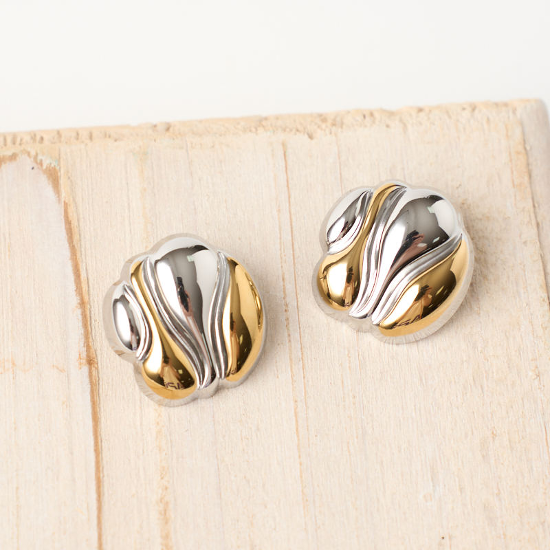 Simple waterproof 18k gold silver stainless steel irregular geometric metal earringsSimple waterproof 18k gold silver stainless steel irregular geometric metal earrings