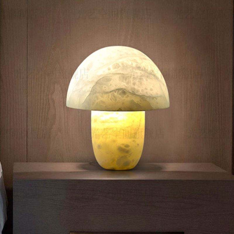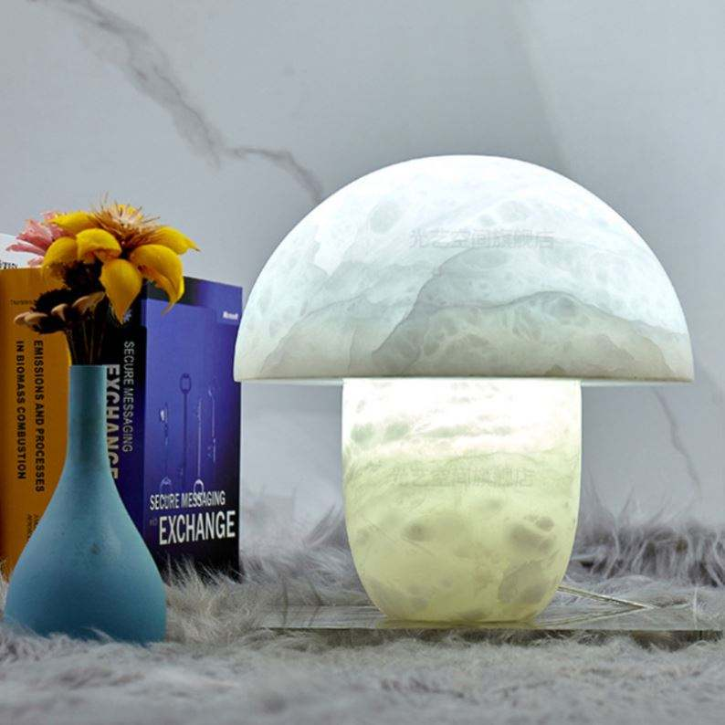 Spanish Natural Marble Table Lamp for Hotels Villas Feature Electric for Bedside Decor Mushroom Style Marble Lights
