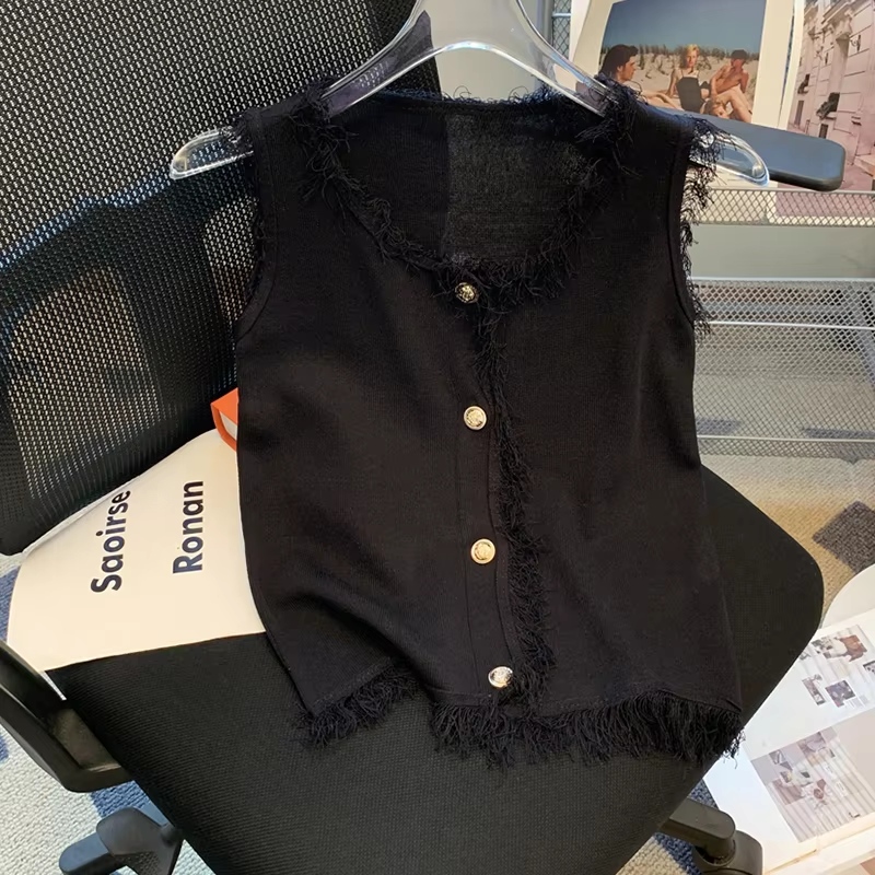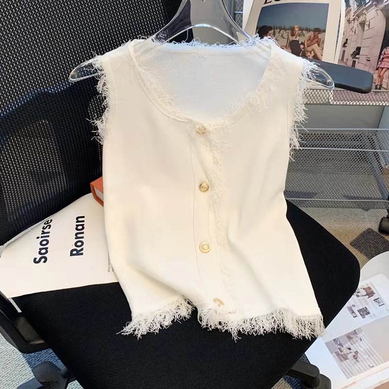 Summer Chic Fringed Hem Knitted Vest Slim Fit Sleeveless Tank Top Women's Breathable Casual T-Shirt Single-breasted Chic TopSummer Chic Fringed Hem Knitted Vest Slim Fit Sleeveless Tank Top Women’s Breathable Casual T-Shirt Single-breasted Chic Top