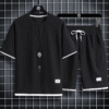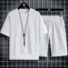 Summer men’s two-piece linen fabric casual T-shirt shorts set men’s sports set fashionable short sleeved sportswear