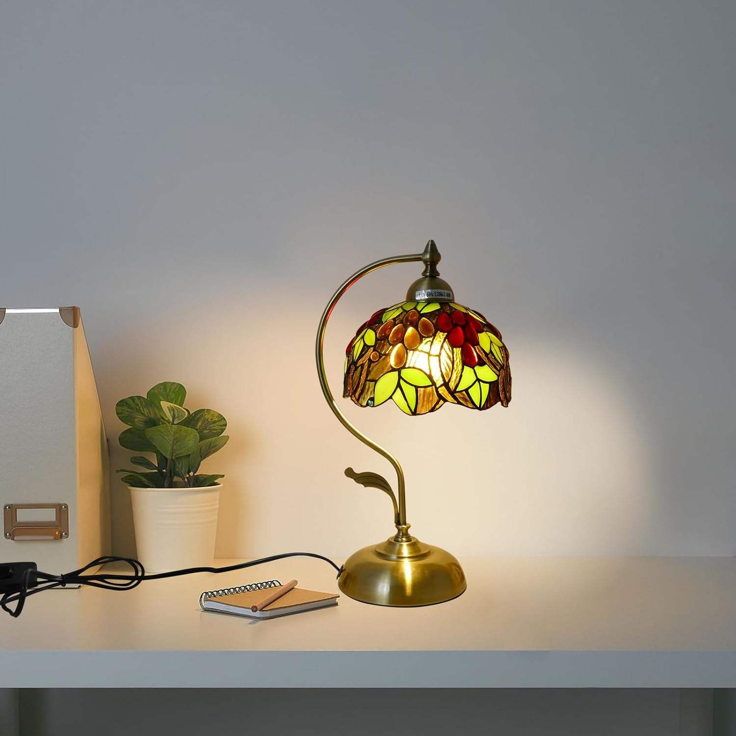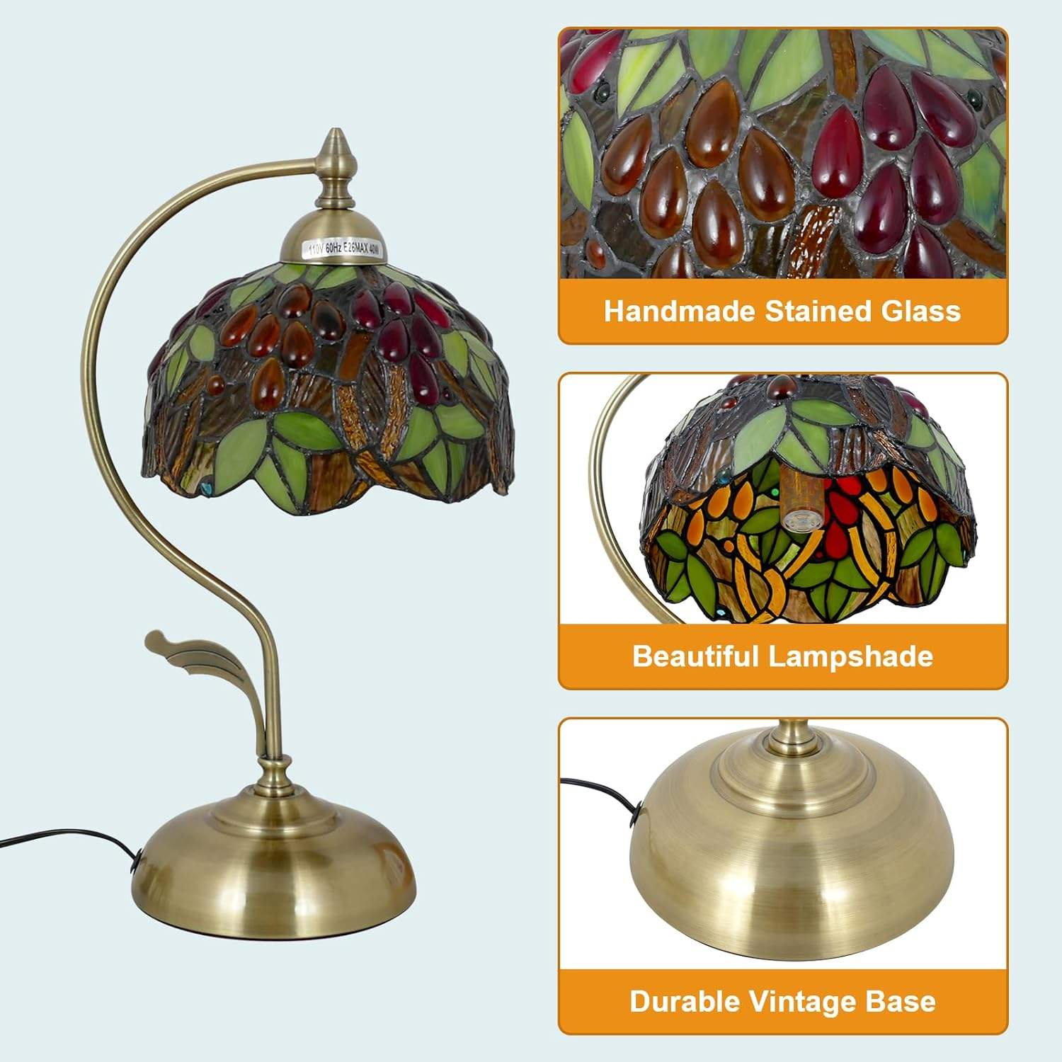 1 review for Tiffany Style Table Lamp Beautiful Grapes and Leaves Handmade Stained Glass Desk with Leaf Iron Base Vintage Curved Reading Lamp