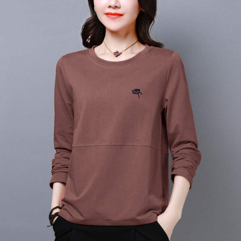 Women’s T-shirt long sleeved spring and autumn solid color base shirt loose pullover top embroidered women’s fashionable streetwear
